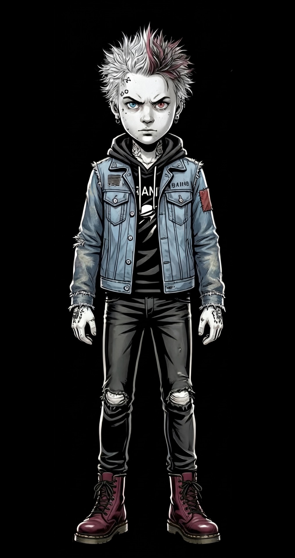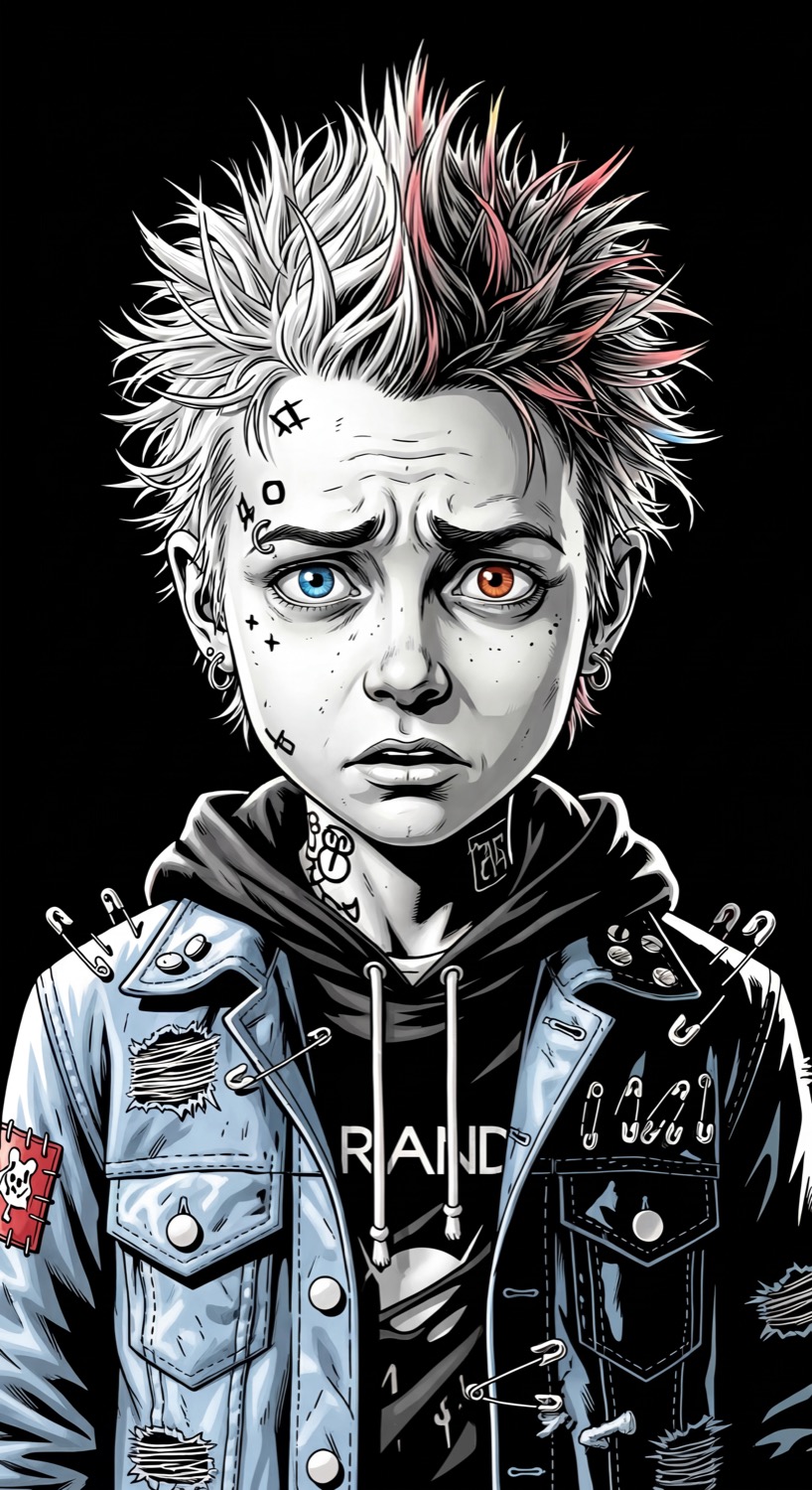 Character development for people with problems. A visual study on repetition of a theme, exploring identity through AI-assisted illustration and 3D reference modeling.